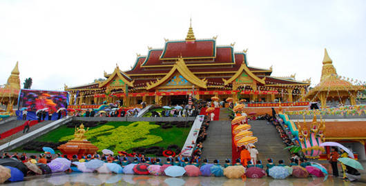 勐泐大佛寺位于云南省西雙版納傣族自治州州府景洪市城郊,按照國(guó)家AAAA級(jí)景區(qū)標(biāo)準(zhǔn)打造。勐泐大佛寺是在古代傣王朝的皇家寺院“景飄佛寺”的原址上恢復(fù)重建的,“景飄佛寺”是傣族歷史上一位名叫撥龍的傣王為紀(jì)念病故的王妃南紗維扁而修建。王妃一生信奉佛法,所以每逢節(jié)日傣王就親臨寺院,舉行大型法會(huì),以紀(jì)念愛(ài)妃同時(shí)弘揚(yáng)佛法。據(jù)史料記載:“景飄佛寺”始建于明代,是南傳佛教象征十二版納的標(biāo)志性建筑之一,也是版納佛教活動(dòng)的重要場(chǎng)所。該建筑在佛歷2883年(即公元1848年,清咸豐年間)戰(zhàn)爭(zhēng)中被毀,距今已有169年。佛寺于2005年開(kāi)始重建,于同年3月9日舉行了大型的土地開(kāi)光儀式,于2005年5月9日舉行了盛大的大殿奠基開(kāi)光儀式,在大殿施工時(shí),挖掘出大量的銀幣、銀盒、佛教法事用品等。佛寺于2007年11月3日一期工程竣工,竣工之時(shí),邀請(qǐng)了海內(nèi)外108位高僧為佛寺舉行了盛大的開(kāi)光大典,州內(nèi)外參加開(kāi)光大典的各民族佛教信眾達(dá)65萬(wàn)人之多。 占地面積400畝,佛寺依山而建,落差達(dá)122.8米,呈坐佛形,為國(guó)內(nèi)外所獨(dú)有。景區(qū)以佛祖釋迦牟尼的生平及佛寺活動(dòng)為主線,巧妙融入到景觀及建筑群體中,充分展示南傳佛教的歷史與傳統(tǒng)文化色彩。從萬(wàn)佛塔前廣場(chǎng)俯視景洪市區(qū),旖旎的熱帶風(fēng)光盡收眼底。