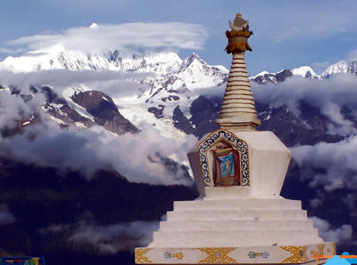 梅里雪山,位于云南迪慶藏區(qū)德欽縣境內(nèi),為云南與西藏的界山。主峰卡瓦格博海拔6740米,為云南第一高峰,峰型有如一座雄壯高聳的金字塔,時隱時現(xiàn)的云海更為雪山批上了一層神秘的面紗。被譽為雪山之神的卡瓦格博作為藏區(qū)八大神山之首,享譽世界。 卡瓦格博的高聳挺拔之美以及在宗教中的崇高而神圣的地位吸引了無數(shù)的中外旅游者和登山者。然而,從二十世紀初至今的歷次大規(guī)模登山活動無不是以失敗告終。1991年,中日聯(lián)合登山隊對主峰發(fā)起了沖擊,他們從三號營地出發(fā)沖頂,上升至海拔6700米時天氣突然變得惡劣只好下撤準(zhǔn)備第二天繼續(xù)沖頂。然而當(dāng)晚當(dāng)隊員與大本營進行過最后一次語音聯(lián)系后遭遇大規(guī)模雪崩,所有隊員全部遇難,長眠在了卡瓦格博。部分遺體于數(shù)年后被放牧的藏民在主峰另一側(cè)的大冰板發(fā)現(xiàn)。人類對雪山之神征服的嘗試又一次以徹底的失敗告終。從此也更讓人領(lǐng)會到藏族同胞對人與自然關(guān)系更為真誠和深刻的理解:人只有尊重自然愛護自然方能與自然和諧相處;人若一心與自然為敵,只意欲征服自然,則必將以滅亡告終,F(xiàn)在,在梅里雪山下各個旅館和寺廟中,常能見到藏族同胞呼吁禁止攀登雪山的倡議書,其行文簡潔,話語犀利,其中卻實有深意。