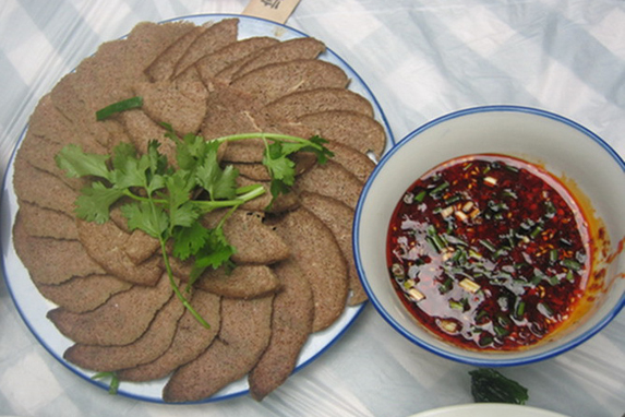 “寺不”是納西族的一道遠(yuǎn)近聞名的風(fēng)情名菜,納西語意為“吹肝”。是將豬肝充分使之膨脹,塞入精鹽、五香粉、姜絲、火硝、紹酒、腌漬后取出,再撒上花椒粉風(fēng)干。食 用時(shí)將“寺不”放入湯鍋,加辣椒果、姜、花椒,用文火慢煮,取出切成片。色澤鮮潤。麻辣芬芳,且耐貯存,可保持一年風(fēng)味不變。肉色彩透明,見之令人垂涎欲滴,可煮可燉,是藏人待 客的佳肴。