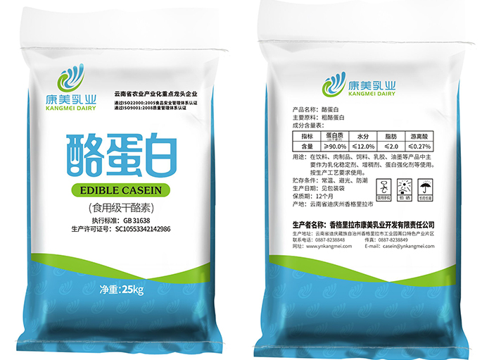 Edible casein and caseinate is known, the purified compound use made of high-tech bio technology of pure natural yak cheese protein, is a kind of high protein,high nutrition food additives, are widely used in various types of food and drink.